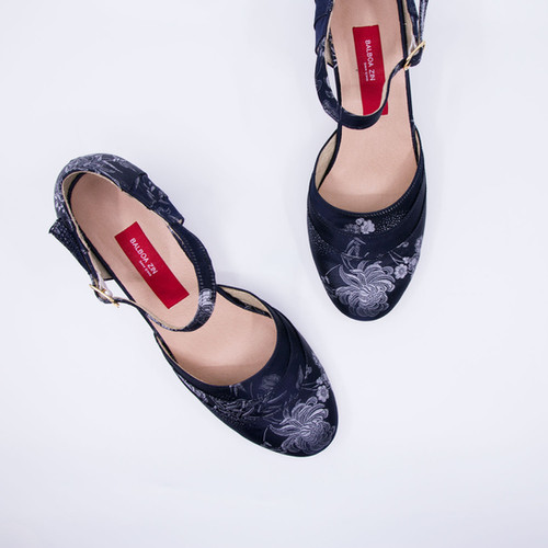 仅限定制。此款丝绸已停产。请咨询我们了解其他可供选择的丝绸款式。皮革、刺绣丝绸,配皮革鞋跟:- 4厘米(EU35至EU42码)- 6厘米(EU35至EU40码)