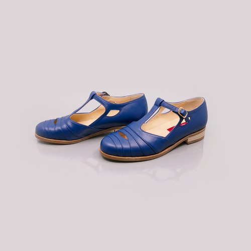 钴蓝色羊皮鞋跟,鞋跟高度分别为 2 厘米、3 厘米和 4 厘米,现货供应,尺码:EU36(US6)。2 厘米鞋跟 - 光泽度 ★★★☆☆,柔软度 ★★★★★☆,耐用性 ★★★☆☆,颜色 ★★★★★