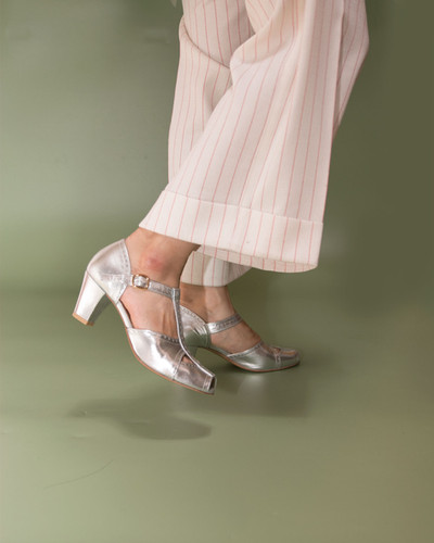 皮革鞋面,银色鞋跟,鞋跟高度分别为 3 厘米、4 厘米、5 厘米和 6 厘米